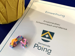 Am Freitag, den 23.01.2026 wurde Poings neues Schulschwimmbad und die Mensa offiziell eröffnet. Erster Bürgermeister Thomas Stark begrüßte die geladenen Gäste, darunter die Amtskollegen aus Pliening, Kirchheim und Markt Schwaben, die Vertreterinnen der Poinger Schulen sowie die beteiligten Baufirmen und Planungsbüros.