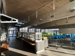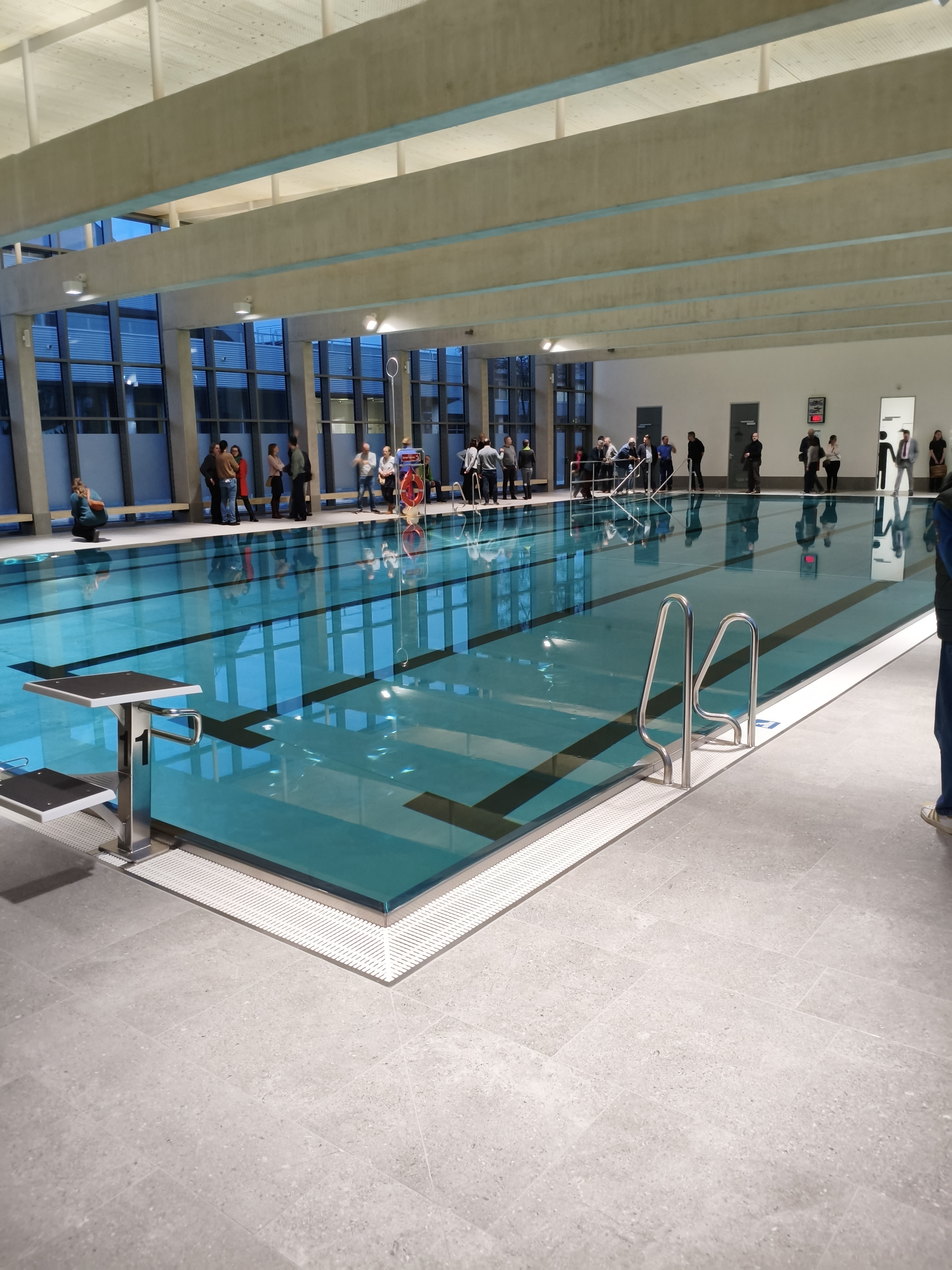 Nach der symbolischen Schlüsselübergabe durch Architektin Anne Hueges, folgte das Grußwort von Landrat Robert Niedergesäß und der Segen durch Poings katholischen Pfarrer Jasper Gülden. Anschließend konnten die Gäste die Schwimmhalle und die Technik im Untergeschoss besichtigen.