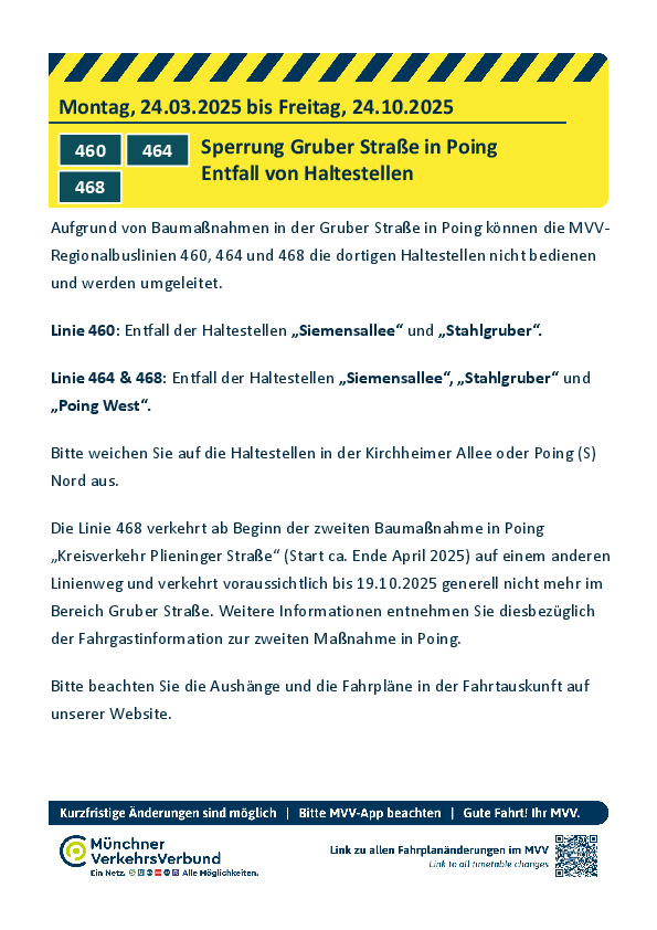Je nach Bauabschnitt ist auch die Einmündung zur Alte Gruber Straße gesperrt. Die Zufahrt ist über die Bürgerstraße möglich. Der Anliegerverkehr soll während der Bauzeit möglichst aufrechterhalten werden. Beim Abfräsen und Aufbringen von Asphaltschichten wird es zu Einschränkungen kommen. Unmittelbar Betroffene werden darüber gesondert informiert.