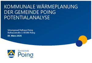 Um die kommunale Wärmeplanung möglichst gut an die lokalen Möglichkeiten und Bedürfnisse der Gemeinde Poing und ihrer Bürgerinnen und Bürger anpassen zu können, freut sich die Gemeinde über Rückmeldungen von Unternehmen, Landwirten oder größeren Betrieben, die über Wärmepotentiale verfügen und sich vorstellen können, dieses mit dem umliegenden Quartier zu teilen. Auch dürfen sich jederzeit Privatpersonen, die bereits heute eine vorbildhafte Umsetzung der Wärmewende in ihrem eigenen Haus auf den Weg gebracht haben und ihre Erfahrungen gerne teilen oder sich zu einer Sanierung ihres Hauses beraten lassen möchten, können Sie sich an Marius Waldvogel wenden. E-Mail schicken.