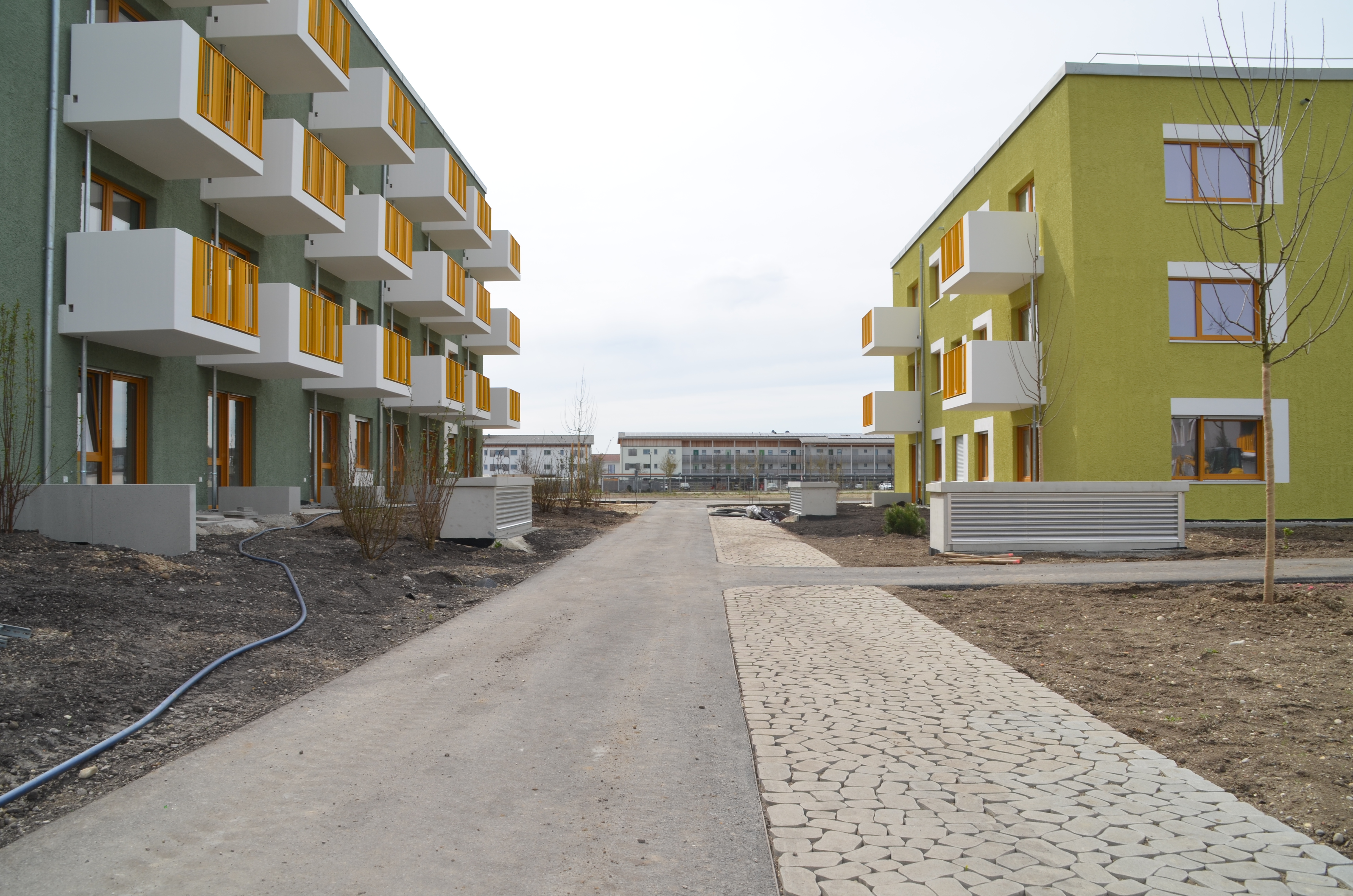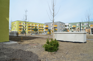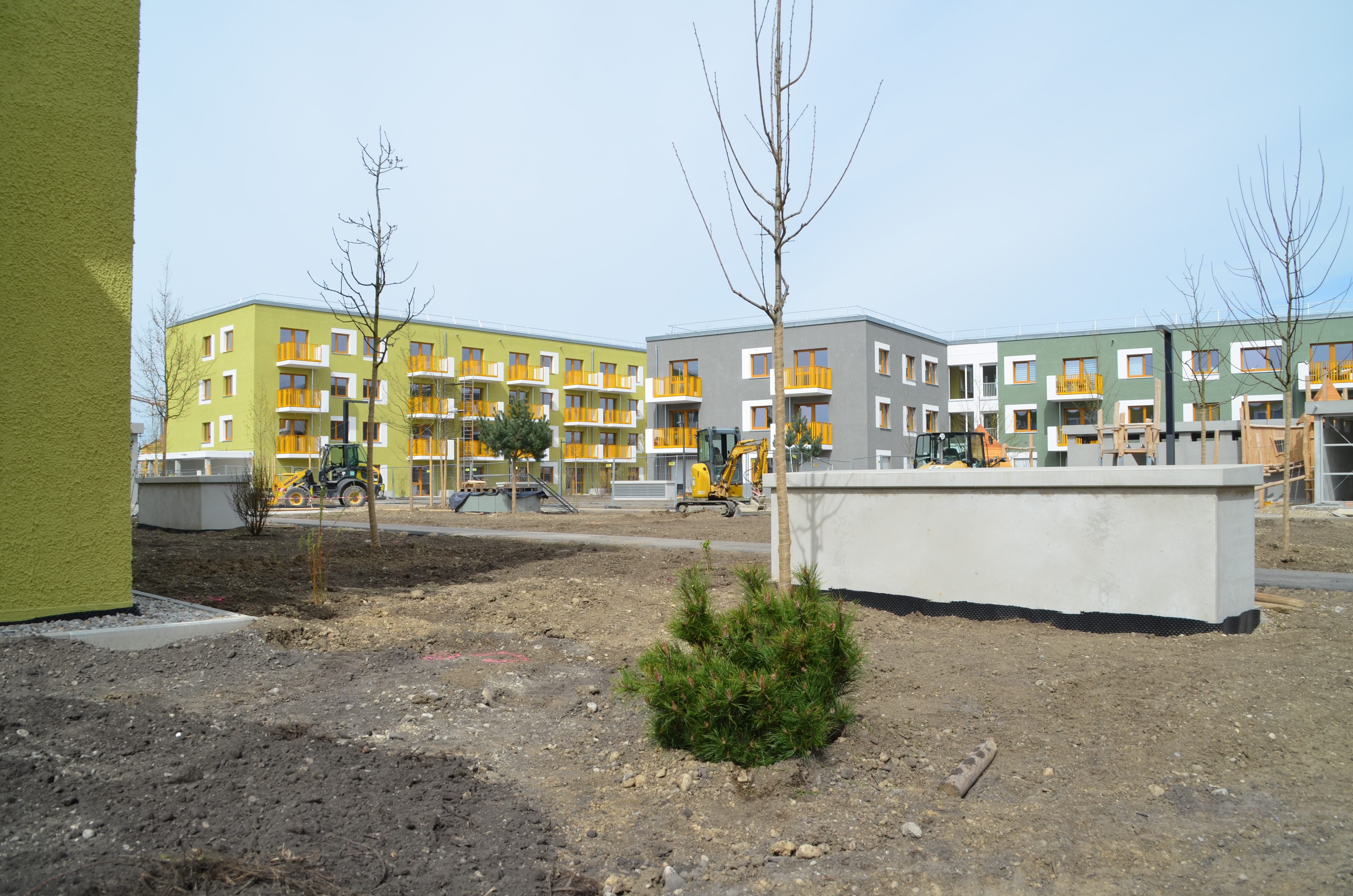 Nachdem die Münchner Wohnen ihre erste Wohnanlage fertig gestellt hat, ist das Quartier Lerchenwinkel im Einzugsfieber. In 76 Wohnungen ziehen im April glückliche Mieter in günstigen Wohnraum. Und die nächsten Bauprojekte stehen schon vor der Tür: Beim Clusterwohnen steht schon der Gebäudekörper und die Terrafinanz ist gerade im Vertrieb von Reihen- und Doppelhäusern in bester Lage. Aber auch die Wohnumgebung wird weiter ausgebaut.