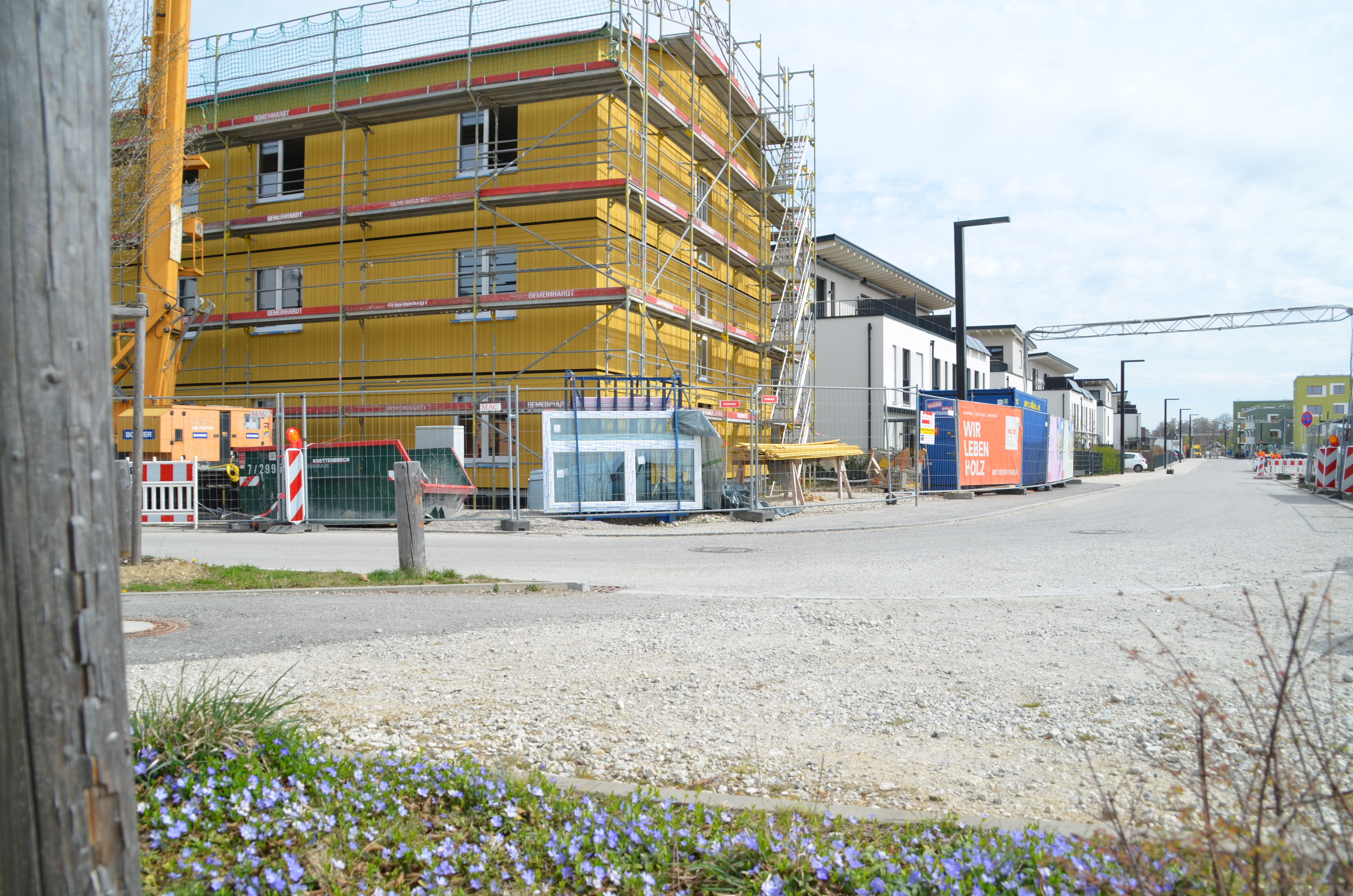Die ARGE Poing "Am Bergfeld" hat Mitte Dezember 2020 die Straßen im Lerchenwinkel fertiggestellt und an die Gemeinde übergeben.. Derzeit laufen die Hochbaumaßnahmen.