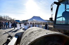 Zusammen mit Poings Erstem Bürgermeister Thomas Stark feierten die Beteiligten den Baufortschritt.