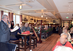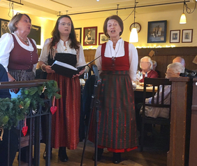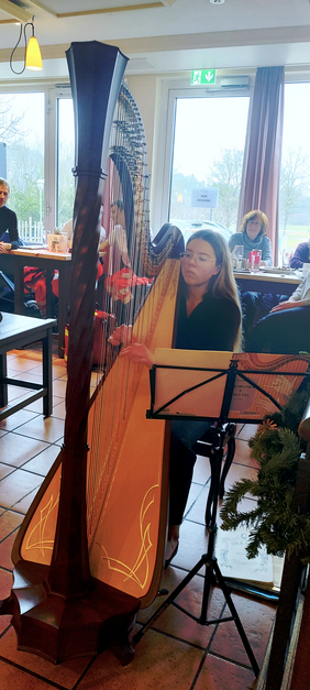 Vor dem Mittagessen gab es erst einmal eine Stärkung für die Seele mit besinnlichen Gedanken zum Advent von Herrn Pfarrer Jasper Gülden. Für die musikalische Einstimmung auf die Advents- und Weihnachtszeit sorgten Sophie Pfaffenstaller (Harfe) und die Damen vom “Poinger Dreigesang“ mit dem Gitarrenspieler Jörg Meier.