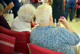 Dieses Jahr wurden sie von Kindern aus der Seerosenschule unterstützt. Sie unterhielten die Bewohner nicht nur mit Liedern und Gedichten, sondern hatten mit ihrer Lehrerin und einer Kreativpädagogin sowie einigen Senioren auch noch an drei Nachmittagen Geschenke gebastelt. Die beleuchteten, bunt verzierten Fläschchen sowie die farbenfrohen Fensteranhänger kamen bei den Bewohnern sehr gut an.