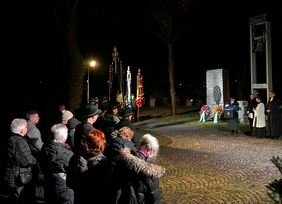 Auch in diesem Jahr wurde am Abend vor dem Volkstrauertag ein ökumenischer Gedenkgottesdienst gefeiert, der von der Musikkapelle Poing begleitet wurde. Im Anschluss gingen die beiden Pfarrer Jasper Gülden (Katholisches Pfarramt) und Michael Simonsen (Evangelische Christuskirche) mit Erstem Bürgermeister Thomas Stark, den Mitgliedern des Soldaten- und Kameradschaftsvereins, den Fahnenabordnungen der Vereine, Gemeinderatsmitgliedern und Besuchern in einem Trauerzug zum Kriegerdenkmal auf dem Friedhof am Endbachweg. Die Poinger Feuerwehr sicherte den Zug ab.