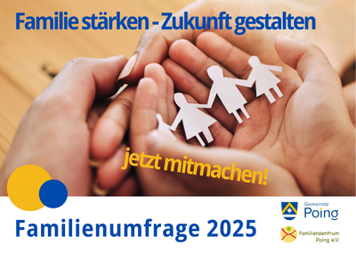 In Zusammenarbeit mit dem Familienzentrum Poing e.V. hat die Gemeinde Poing vom 24.06.2025 bis 31.07.2025 eine Umfrage durchgeführt. Alle Haushalte mit minderjährigen Kindern unter 18 Jahren erhielten eine Postkarte, es wurde zudem online, im Poinger Nachrichtenblatt und durch Aushänge für diese Aktion geworben.