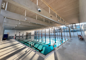 Nach der symbolischen Schlüsselübergabe durch Architektin Anne Hueges, folgte das Grußwort von Landrat Robert Niedergesäß und der Segen durch Poings katholischen Pfarrer Jasper Gülden. Anschließend konnten die Gäste die Schwimmhalle und die Technik im Untergeschoss besichtigen.