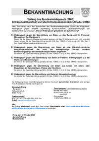 Sie haben nach den Vorschriften des Bundesmeldegesetzes (BMG) die Möglichkeit, Widerspruch geg
