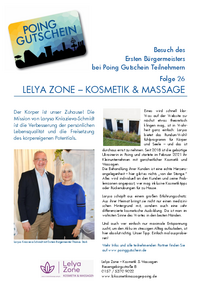 Besuch des Ersten Bürgermeisters bei Poing Gutschein Teilnehmern Folge 26 LELYA ZONE – KOSMETIK & MASSAGE Der Körper ist unser Zuhause! Die Mission von Larysa Kniazieva-Schmidt ist die Verbesserung d