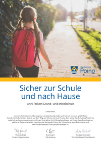 Sicher zur Schule und nach Hause Anni-Pickert-Grund- und Mittelschule Liebe Eltern, unsere Schulkinder sind die jüngsten und gleichzeitig leider auch die am meisten gefährdeten Verkehrsteilnehmenden,