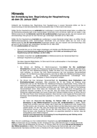 Hinweis bei Anmeldung bzw. Begründung der Hauptwohnung ab dem 26. Januar 2026 Anlässlich der Anmeldung bzw. Begründung Ihrer Hauptwohnung in unserer Gemeinde dürfen wir Sie im Zusammenhang mit den bev