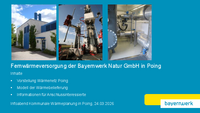 Fernwärmeversorgung der Bayernwerk Natur GmbH in Poing Inhalte Vorstellung Wärmenetz Poing Modell der Wärmebelieferung Informationen für Anschlussinteressierte Infoabend Kommunale Wärmepla