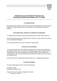 Entgeltordnung der Gemeinde Poing über die Nutzung des Schulschwimmbads vom 12.12.2025 § 1 Entgelterhebung Die Gemeinde Poing erhebt für die Benutzung des Schulschwimmbades in der Gruber Straße 2 Ent