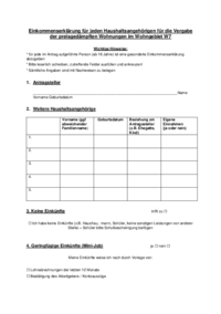 Einkommenserklärung für jeden Haushaltsangehörigen für die Vergabe der preisgedämpften Wohnungen im Wohngebiet W7 Wichtige Hinweise: * für jede im Antrag aufgeführte Person (ab 16 Jahre) ist eine geso