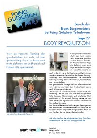 Besuch des Ersten Bürgermeisters bei Poing Gutschein Teilnehmern Folge 29 BODY REVOLUTZION Wer ein Personal Training der ganzheitlichen Art sucht, ist hier genau richtig. Anja Lutz bietet weit mehr a