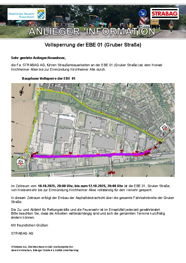 Seit Ende März 2025 wird auf der Gruber Straße ab dem Kreisel an der Tankstelle der südliche Gehweg verbreitert und als Geh- und Radweg ausgebaut, zudem werden zwei weitere Querungsinseln errichtet und der Fahrbahnbelag erneuert. Die Baumaßnahme ist in vier Bauabschnitte aufgeteilt.